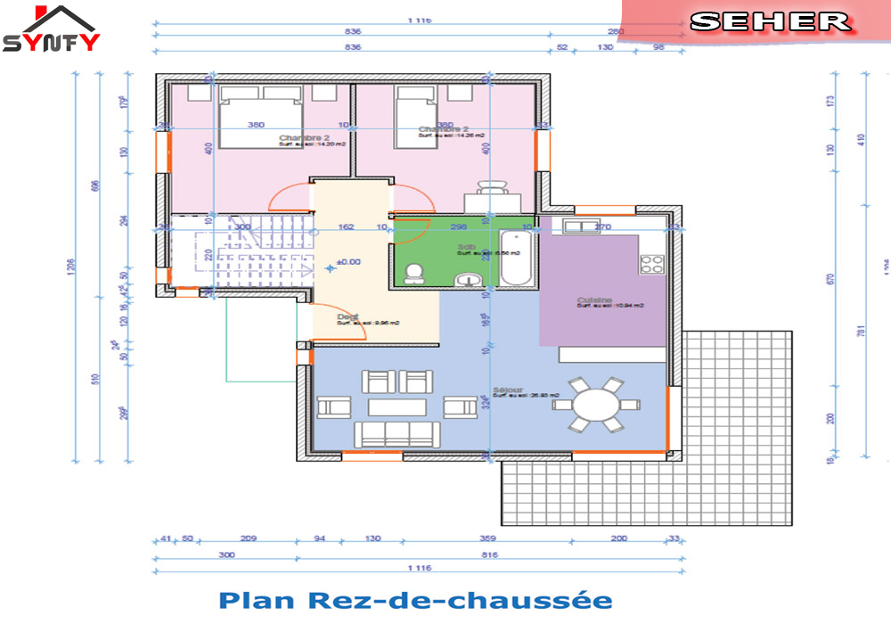 plan du rdc de la maison inviduelle modèle SEHER