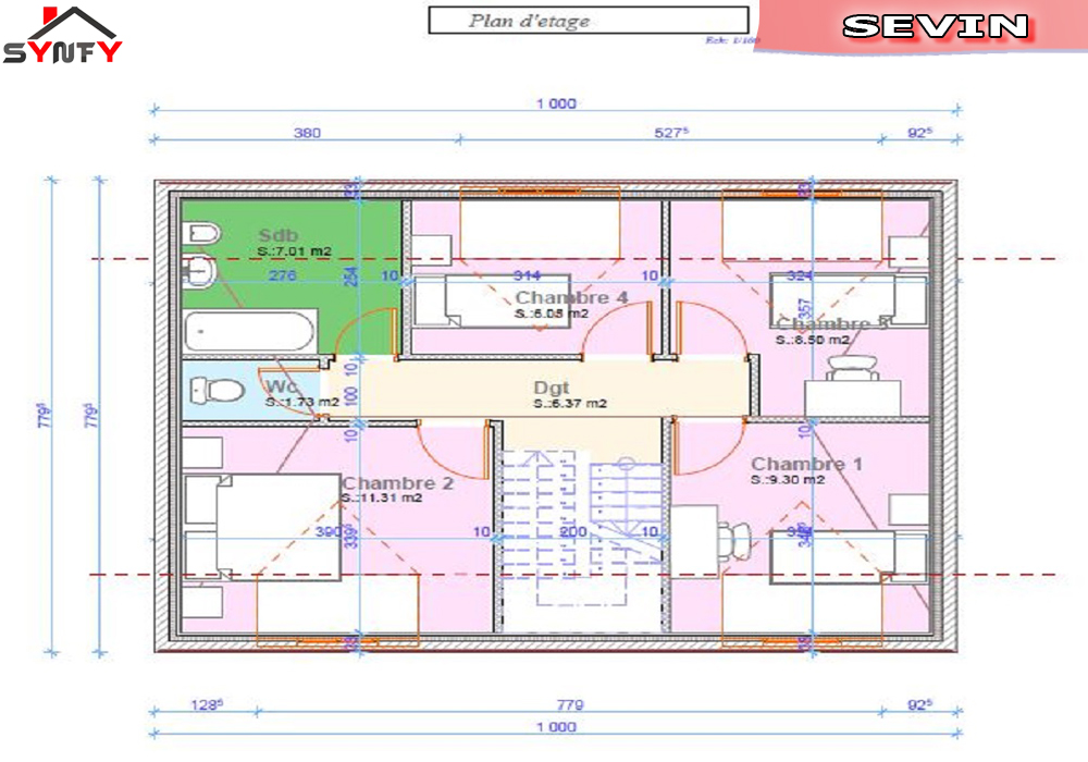 plan de l'étage de la maison inviduelle modèle SEVIN