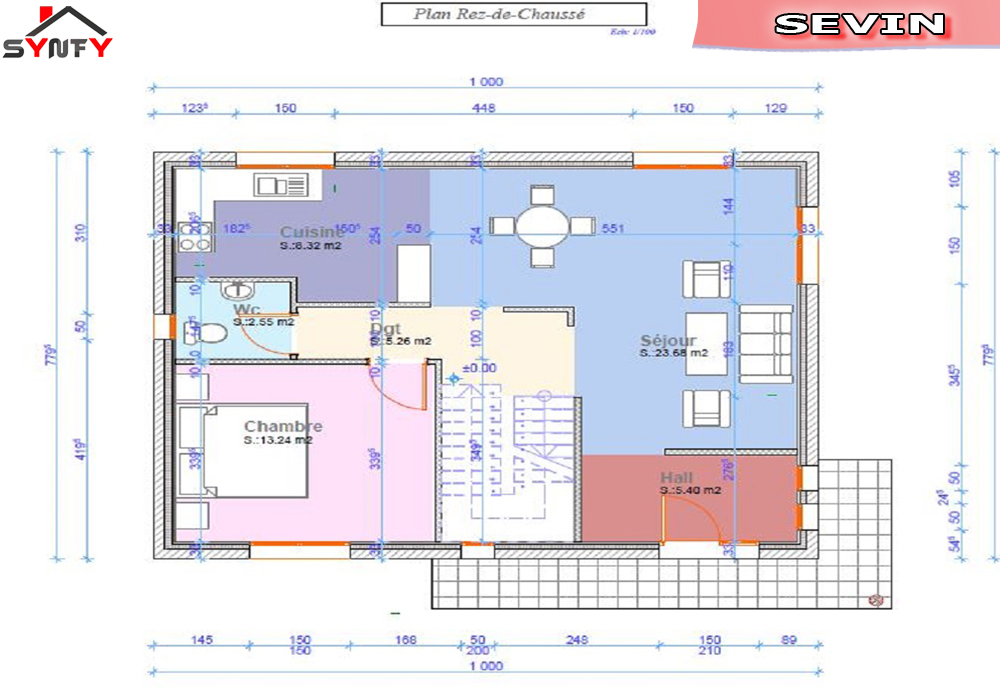 plan du rdc de la maison inviduelle modèle SEVIN
